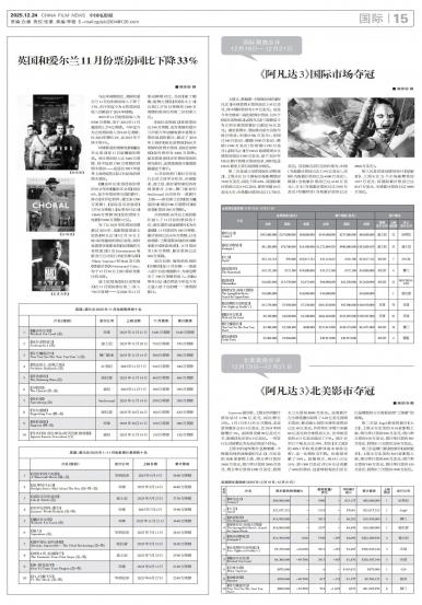《纽伦堡》《合唱团》《至尊马蒂》与去年同期相比,英国和爱尔兰11月份的票房收入下降了33%,但今年迄...