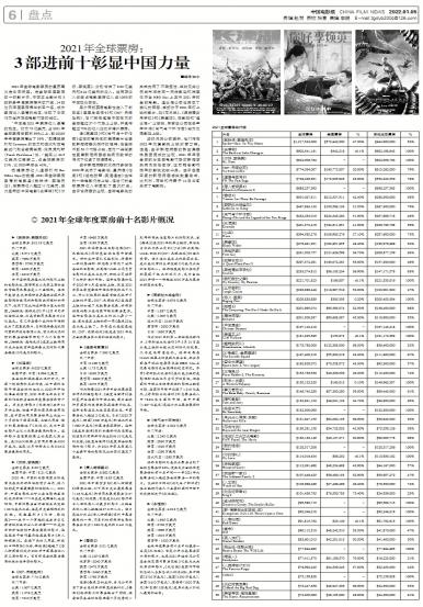 2021年全球电影票房的复苏再次由中国领跑。在全球年度票房前十的影片中,中国本土影片有3部跻身年度票...