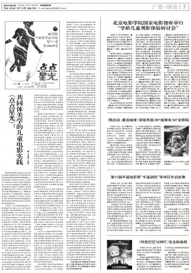 - 北京电影学院国家电影智库举行“学龄儿童观影体验研讨会”本报讯 为探讨研究我国儿童电影发展现状,科学测评学龄儿童的观影偏好,为营建儿童电影健康良好的生态体系...