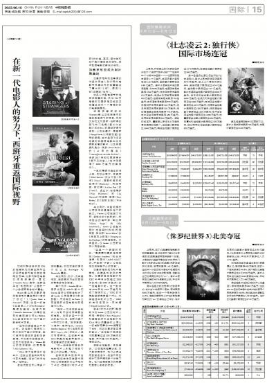 - 《壮志凌云2:独行侠》国际市场连冠上周末,环球影业的《侏罗纪世界3》在57个国际市场中上映——在其中52个市场中排名第一——收获国际周...