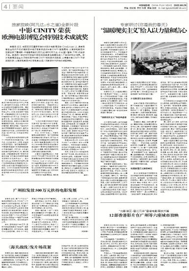 - 中影CINITY荣获欧洲电影博览会特别技术成就奖本报讯 近日,在西班牙巴塞罗那举办的欧洲电影博览会(CineEurope)上,具有我国自主知识产权的...