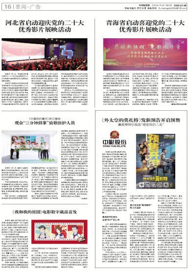 - 河北省启动迎庆党的二十大优秀影片展映活动本报讯 7月1日,“奋进新征程 建功新时代”——河北省迎庆党的二十大优秀影片展映活动在河北石家庄正定...