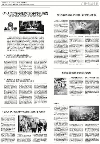 - 2022年法国电影展映(北京站)开幕本报讯 近日,2022年法国电影展映(北京站)在北京百老汇电影中心开幕,杭州、宁波、大连...