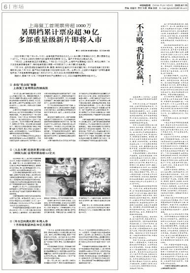 2022年第27周(7月4日-10日),全国电影市场报收6.8亿。《人生大事》次周再收3.9亿,累计...