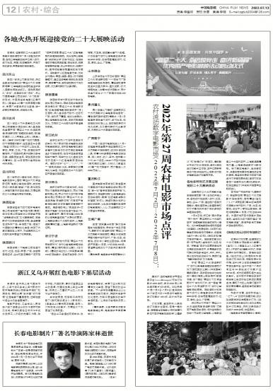 - 各地火热开展迎接党的二十大展映活动本报讯 迎接党的二十大全国优秀影片展映活动于7月1日起正式开启,各地公益电影放映单位深入...