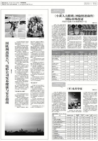 - 因欧洲高温天气,电影公司发布健康与安全指南欧洲迎来了酷热的天气,各大电影公司已经向他们的制片人发布了健康和安全指南。一些欧洲大陆规模较大的独立...