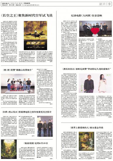 - 《长空之王》聚焦新时代空军试飞员本报讯 近日,聚焦新时代中国军事变革与航空武器装备发展的电影《长空之王》发布贴片预告及先导海报,并了...