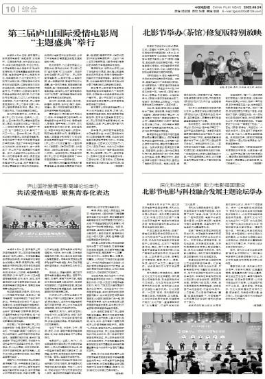 - 共话爱情电影  聚焦青春化表达本报讯 8月21日,第三届庐山国际爱情电影周“庐山国际爱情电影高峰论坛”在庐山举办。中国电影基金会理...