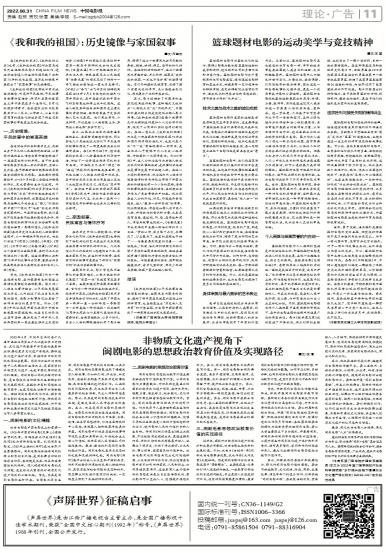 - 非物质文化遗产视角下闽剧电影的思想政治教育价值及实现路径2022年5月,习近平总书记在十九届中央政治局第三十九次集体学习时指出,文化遗产承载着中华民族的基因...