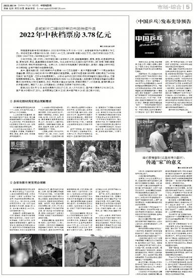 根据国家电影专资办数据统计,2022年中秋档(9月10日-12日),全国电影市场产出票房3.78亿元...