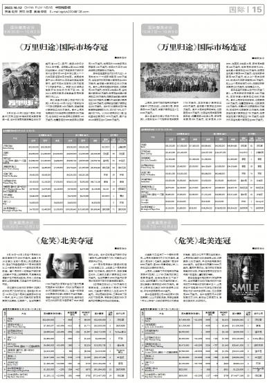 - 《万里归途》国际市场夺冠 9月30日-10月2日这个周末,中国影片《万里归途》夺得国际周末票房榜第一名,该片的首周末票房高达6...
