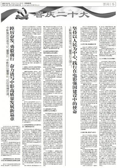 - 踔厉奋发、勇毅前行   奋力谱写中影高质量发展新篇章2022年10月16日,中国共产党第二十次全国代表大会在京胜利召开。这是党领导人民在如期实现第一个百...