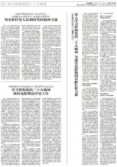- 学习贯彻党的二十大精神 做好电影理论评论工作党的二十大已胜利闭幕,全会发出了“推进文化自信自强,铸就社会主义文化新辉煌”的号召,这将是今后中国文...