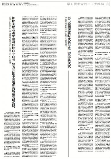 - 加快实现高水平电影科技自立自强  努力开创中国电影高质量发展新局金风送爽,岁物丰成。在全党全国各族人民迈上全面建设社会主义现代化国家新征程、向第二个百年奋斗目标进军...