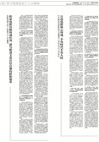 - 彰显电影培根铸魂作用  谱写推进文化自信自强的崭新篇章党的二十大是在全党全国各族人民迈上全面建设社会主义现代化国家新征程、向第二个百年奋斗目标进军的关键时...