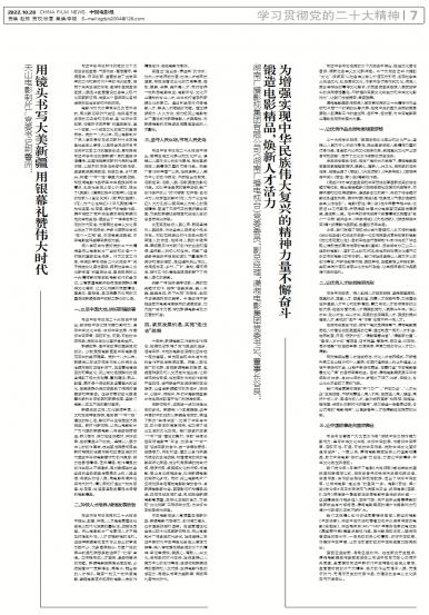 - 锻造电影精品,焕新人才活力,为增强实现中华民族伟大复兴的精神力量不懈奋斗习近平总书记在党的二十大报告中指出,推进文化自信自强,铸就社会主义文化新辉煌。二十大报告近30次提到...