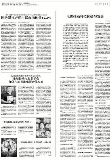 - 网络影视音乐占据市场体量52.2%本报讯 近年来,随着影视音乐的市场规模不断扩大、影响力迅速提升,影音融合正释放出新的活力。2021年...