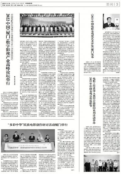 - 2022中国(厦门)数字影视产业高峰论坛举行党的二十大报告指出,繁荣发展文化事业和文化产业,实施国家文化数字化战略。作为第35届中国电影金鸡奖的...