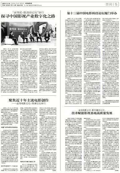 - 第十三届中国电影科技论坛厦门举办本报讯 11月11日,第十三届中国电影科技论坛在厦门市思明区举办,本届论坛由中国电影家协会指导,中国...