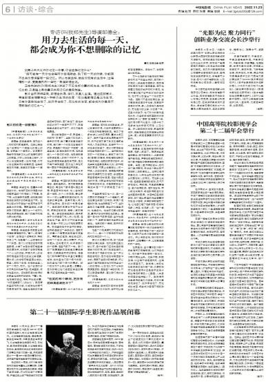 - 中国高等院校影视学会第二十二届年会举行本报讯 近日,中国高等院校影视学会第二十二届年会暨第十五届中国影视高层论坛在北京南京两地、线上线下同...