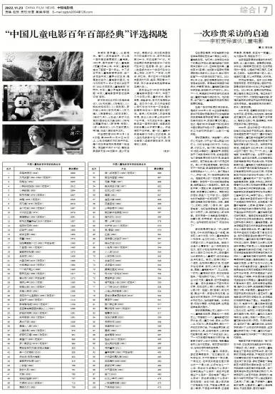 本报讯 百年童心,光影相伴。每个人都曾是孩子,你心里一定有自己最喜爱的儿童电影。1922年,自中国第...