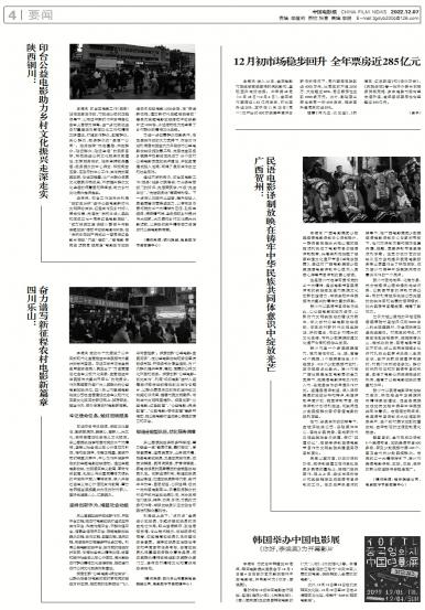 - 12月初市场稳步回升 全年票房近285亿元本报讯 进入12月,全国电影市场逐渐克服疫情的深刻影响,呈现回升向好态势。今年第48周(11月28日...
