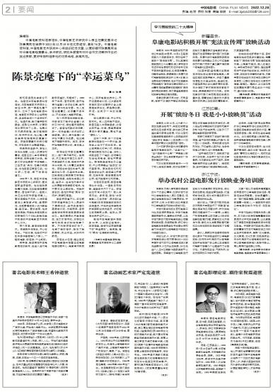 - 陈景亮麾下的“幸运菜鸟”编者按:中国电影资料馆原馆长、中国电影艺术研究中心原主任兼党委书记陈景亮同志因病于2022年12月1...