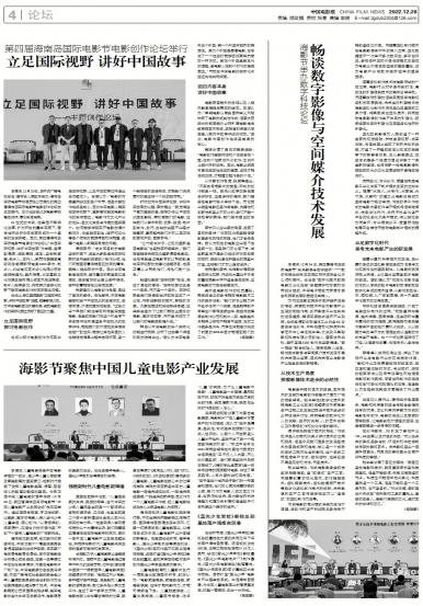 - 畅谈数字影像与空间媒介技术发展本报讯 12月24日,第四届海南岛国际电影节“未来影像与数字经济”——数字科技论坛在三亚湾红树林国际...