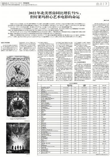 根据ComScore的数据,2022年北美年度票房为75亿美元,在派拉蒙的《壮志凌云2:独行侠》以及...