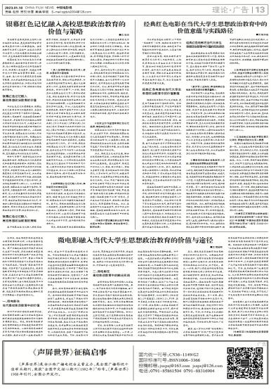 - 银幕红色记忆融入高校思想政治教育的价值与策略思政教育是高校实践立德树人根本任务的主阵地,更是其培育综合素质全面发展时代新人的重要途径。在思政教育...