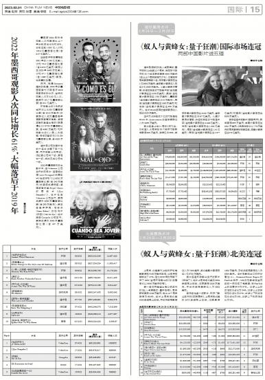 墨西哥2022年的总观影人次和票房比上一年分别增长61%和63%,分别达到1.832亿人次和122....