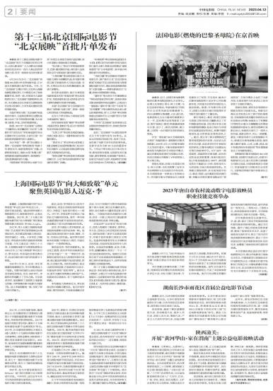 - 第十三届北京国际电影节 “北京展映”首批片单发布本报讯 第十三届北京国际电影节“北京展映”将在今年重新回归四月举办,让热心影迷和广大人民群众在春暖花...
