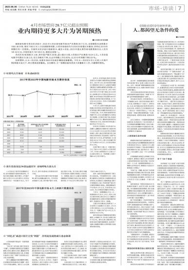 据国家电影专资办初步统计:2023年4月全国电影市场共产出票房28.7亿元,全国影院共放映影片109...