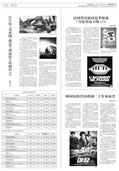 《魔法蓝精灵》《钢琴事故》根据法国国家电影中心(CNC)的数据,7月份法国电影票房收入下滑,共计14...