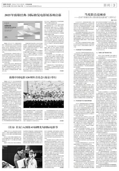 - 2025年致敬经典·国际修复电影展苏州启幕本报讯 10月18日下午,由国家电影局指导,中国电影资料馆、江苏省电影局共同主办,中共苏州市委宣传部...