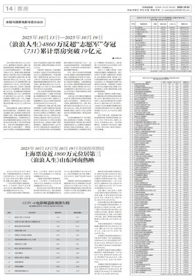 2025年第42周(10月13日-10月19日),随着国庆长假结束,电影大盘热度明显回落,单周票房报...
