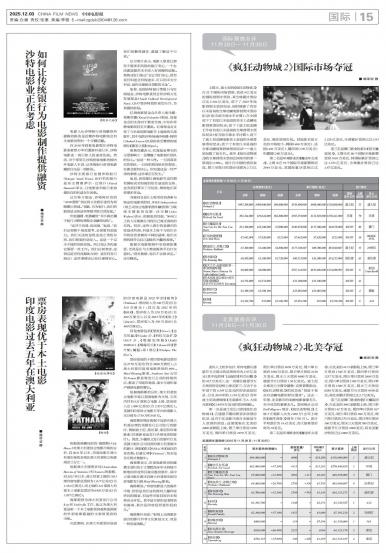 - 《疯狂动物城2》国际市场夺冠